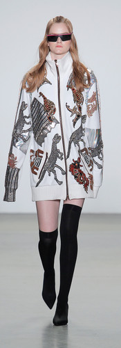 No solo eso, sino que los abrigos y chaquetas sorprenden con técnicas exclusivas de patchwork, luciendo el eco-pelo con Jacquard, de pelo de colores y los flecos de lana decorados con lentejuelas. Queremos todo!