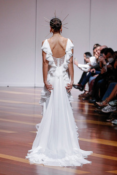 En esta colección, el lujo y la artesanía se fusionan a la perfección a través de una cuidada selección de tejidos como chifón, crepé y organza, que envuelven siluetas sirena y princesa. Los escotes halter y en V realzan la sofisticación, mientras que los bordados de cristal, las plumas y las espaldas infinitas elevan cada diseño. La versatilidad se convierte en un sello distintivo con capas y caídas extraíbles, permitiendo transformar el look con una elegancia sin precedentes.